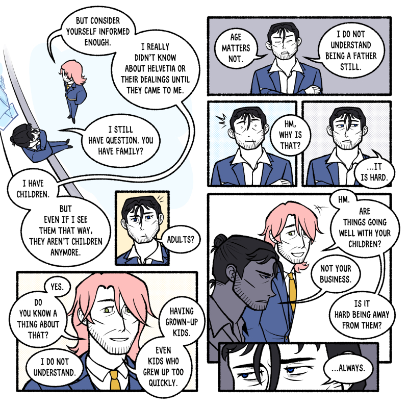 Dedicated to my friend Mint. This is based on the very first play-by-post we had. I always mean it when I say your boundless enthusiasm for this bird family is both so encouraging and heartwarming. I wish I could think of more to say but it's like 5:40am lol. Thanks again, and I hope you liked the comic!